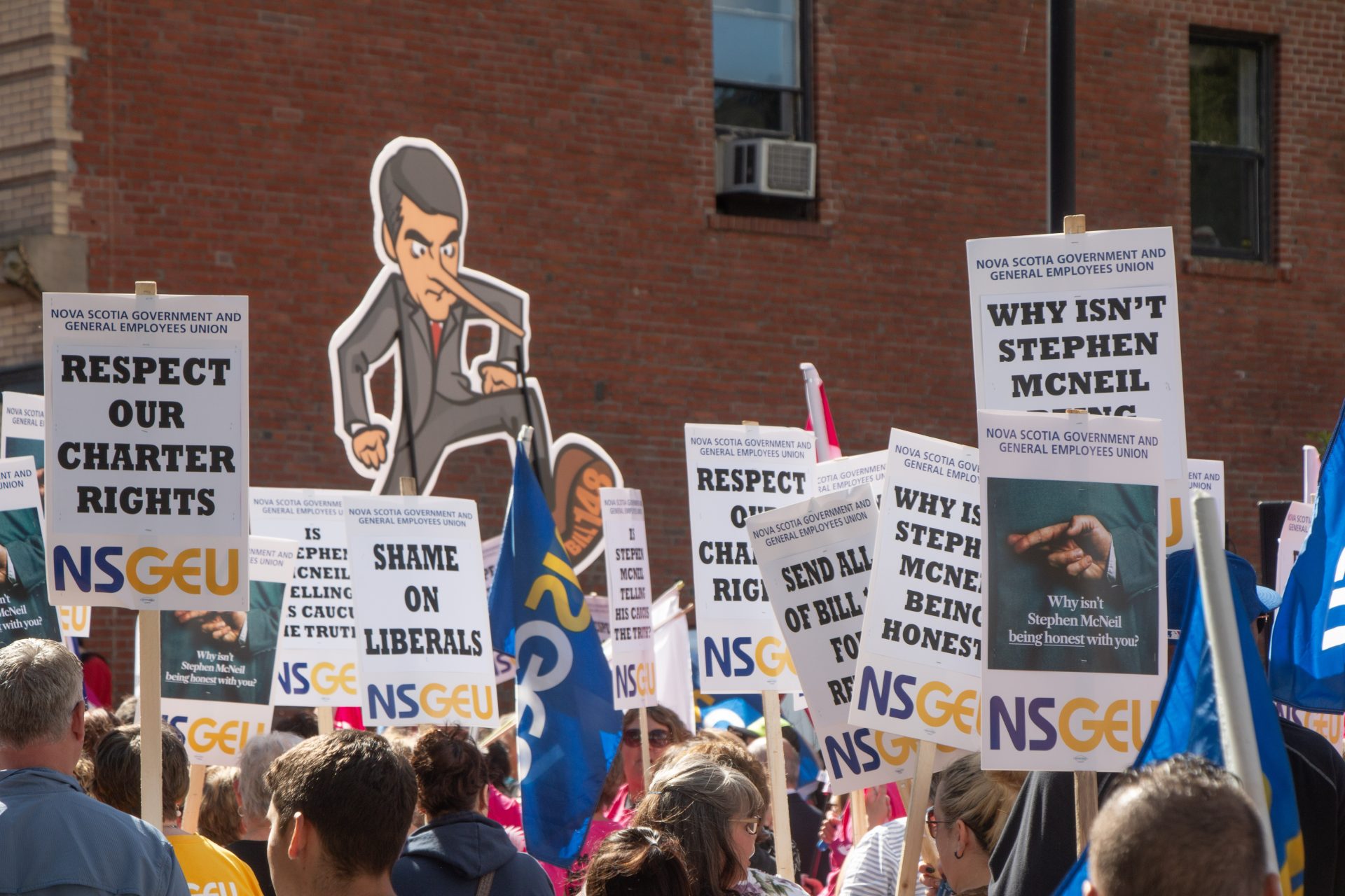 The unions representing these workers – NSGEU, CUPE, CUPE Local 1867, NSNU, NSTU, Unifor, SEIU, IUOE, and CUPW – came together under the Nova Scotia Federation of Labour (NSFL), committed to fighting this legislation.